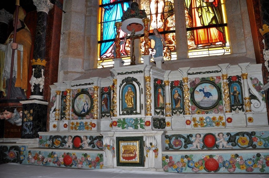 De chaque côté du maître-autel, les statues de Saint-Hilaire et de la Sainte-Trinité.