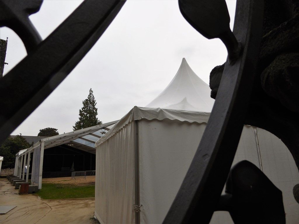 Photo prise le samedi 18 novembre. Le musée est fermé le samedi matin. On voit bien le couloir que doivent suivre les visiteurs pour accéder à l'entrée provisoire du musée breton (travaux)