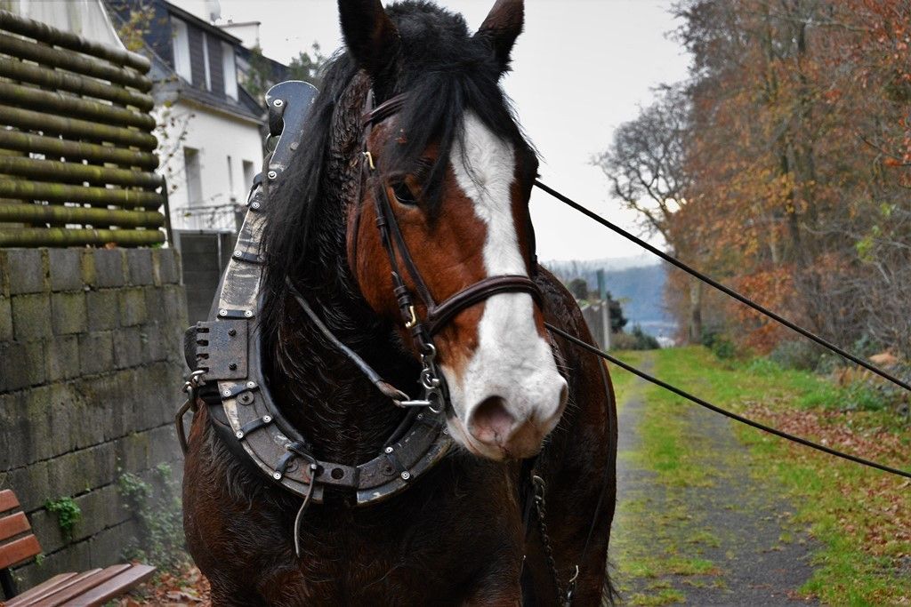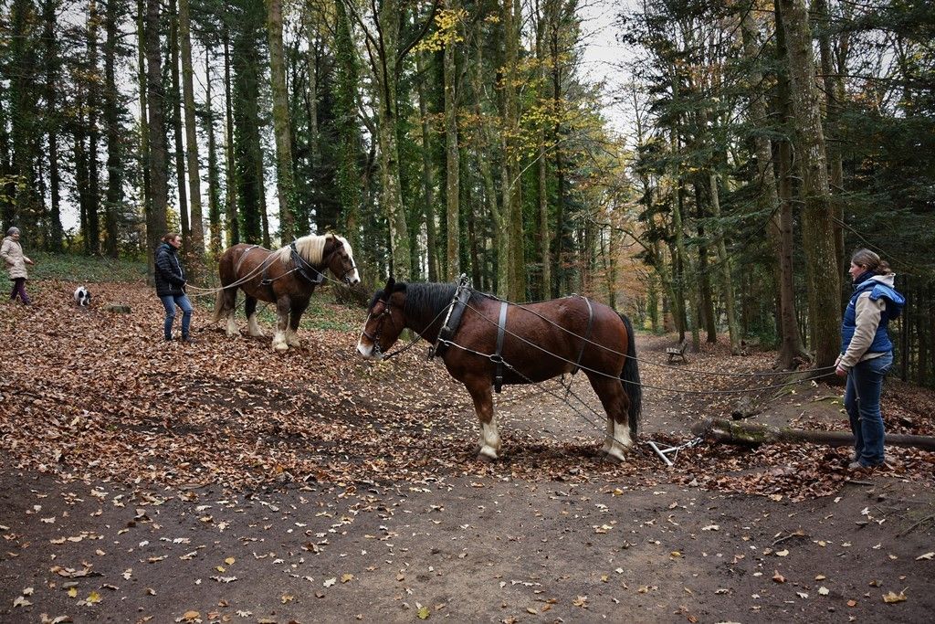 Pour nos deux chevaux de trait bretons, pas de problème ! Dispar a cinq ans, Uber, neuf. Ils font partie de l'équipe Séïté de Plouigneau. Sous la conduite d'Anne-Louise et de Anne, ils ont tiré les troncs jusqu'au bord des allées forestières où les véhicules de la ville pourront venir les charger.