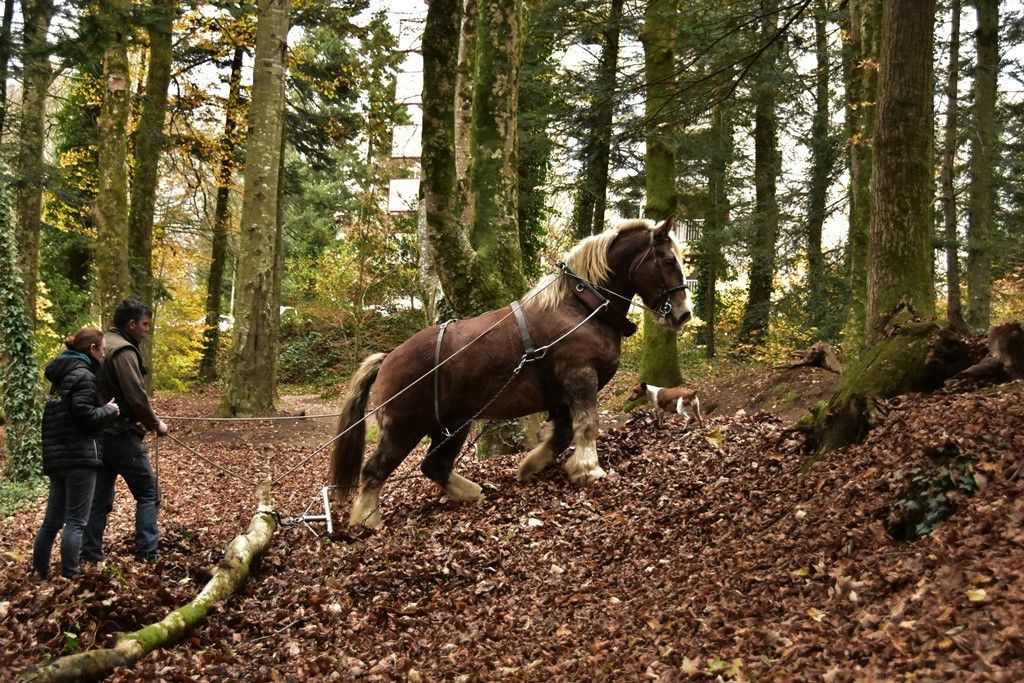 Débardage à l'ancienne, avec chevaux, dans le bois de Kermoysan