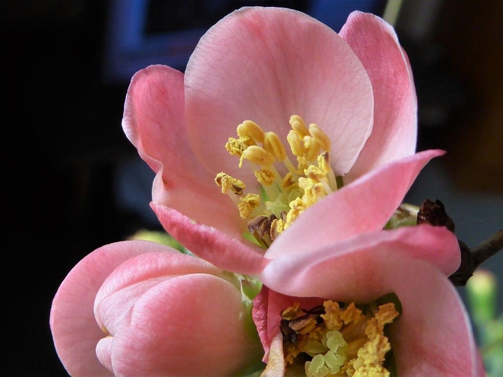 13 Février 2018 Publié par Penhars Infos La jolie fleur du cognassier du Japon Trois photos Quelques branches d'un cognassier du Japon dans un vase, derrière la vitre. Au soleil. Des photos en transparence. Puis la fleur qui pâlit. C'est joli, un cognassier du Japon. On devrait en planter davantage. #Nature Abattage d'arbres le long du boulevard de France à Penhars Les semaines de la parentalité du 10 au 25 février