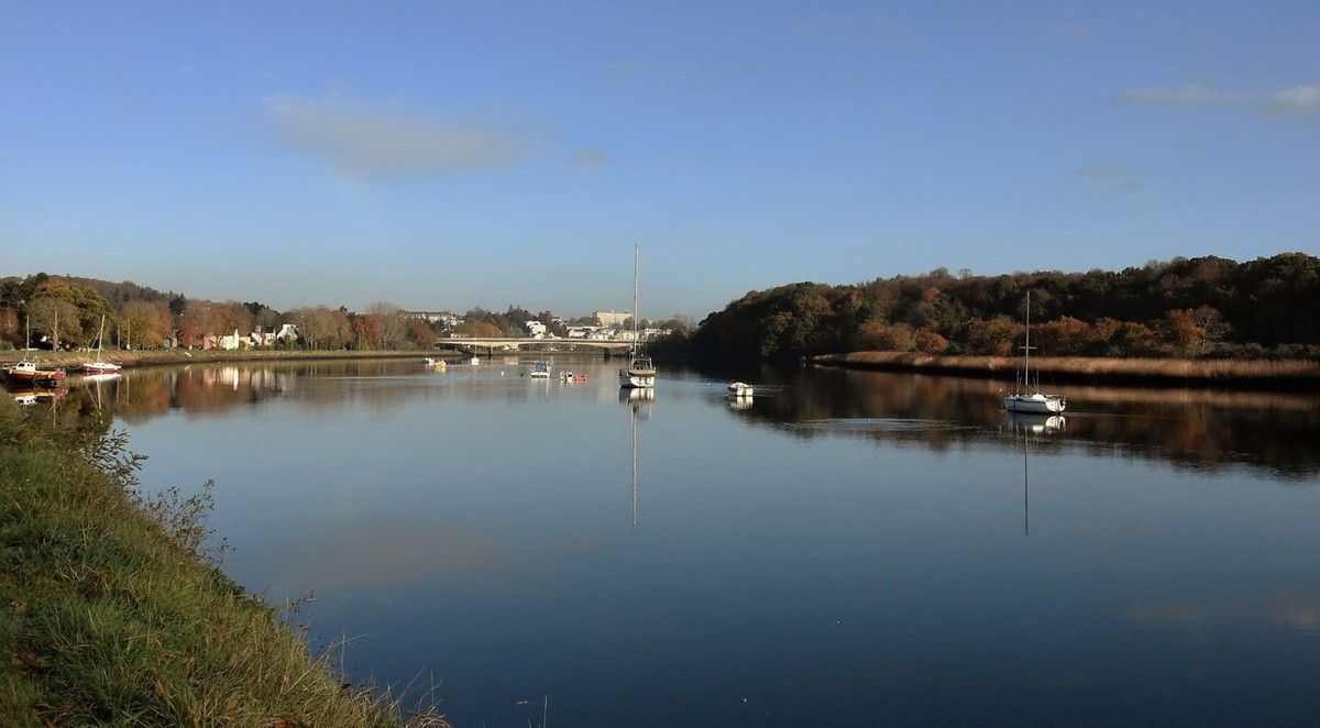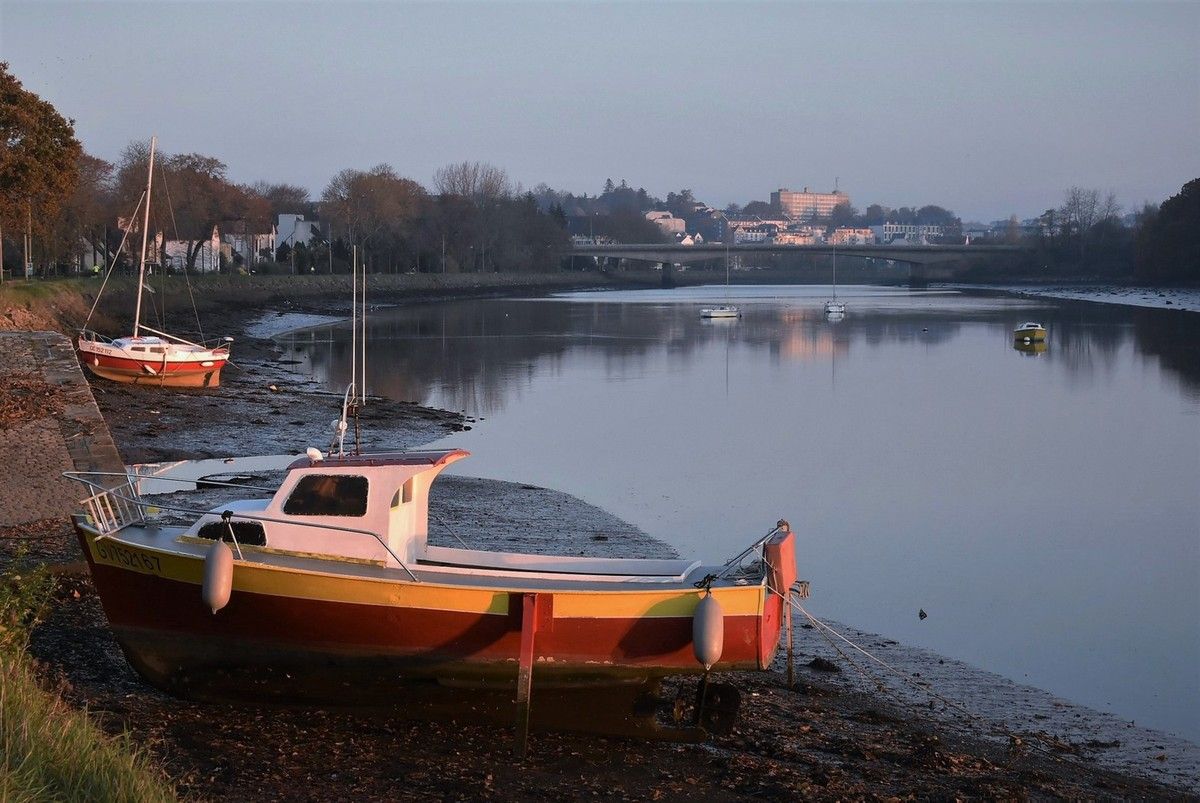 La cale Saint-Jean sur le chemin de halage de Quimper, vous commencez à bien connaître ! Mais cette lumière-là, d'un matin de novembre ensoleillé, je n'avais pas encore pu vous la montrer. En plus, elle va faire plaisir à quelqu'un qui cherche un fond...
